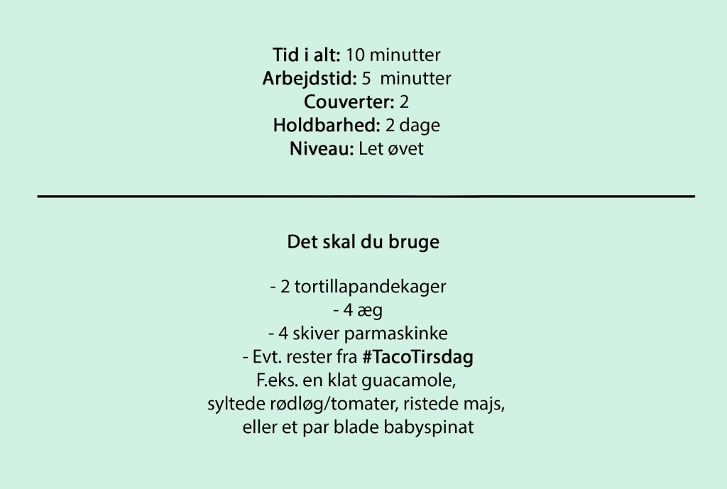 Kender I det? #TacoTirsdag er forbi, og nu står vi tilbage med et par tortillapandekager, en klat guacamole, måske lidt majs… salat… syltede rødløg? Skal det nu bare i skraldespanden, fordi det ikke længere er tirsdag?